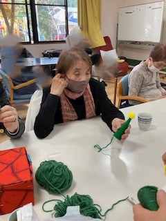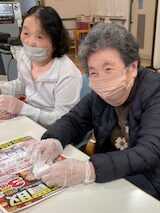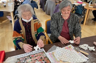 12月はクリスマスツリーと干支飾りつくりを行いました。お隣同士で相談されながら賑やかに作業が進みました。