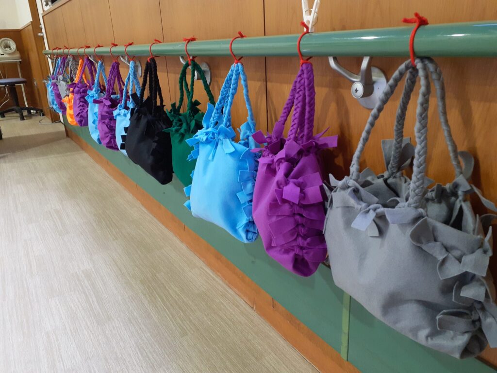 フェルトで作ったバックです。希望の色をご自身で決められ丁寧に作り上げられました。集中力はスタッフの声が聞こえないほど!素晴らしいです。ちなみに若々しい水色が大人気でした!