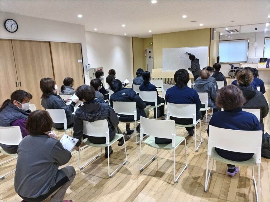 2026.03.25 今日も元気にヘルパー通信!! #長寿の里ヘルパー事業所 3月13日(金)18時~ヘルパー研修を行いました。 今回の研修テーマは「身体介護の実践研修」でした。福祉用具を使いベッド上での水平移動を実践しながら学びました。スライディングシートは驚くほど軽い力で移動でき、スライディンググローブも背中やお尻の下に手を入れて滑らせるだけでスムーズに位置調整もできます。現場での腰痛予防や利用者様の皮膚への摩擦も抑えられます。 DSC_0905_TEMP DSC_0906_TEMP お知らせ一覧 前の記事へ 次の記事へ ページ送り