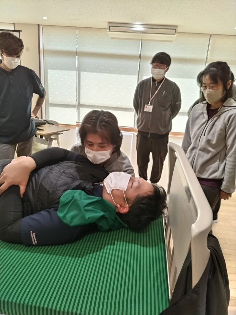 下記の写真は、1月19日(月)、20日(火)、23日(金)の3日間にわたり、外部講師をお呼びして「ノーリフティング、負担のない介護技術」を学んだ時のものです。