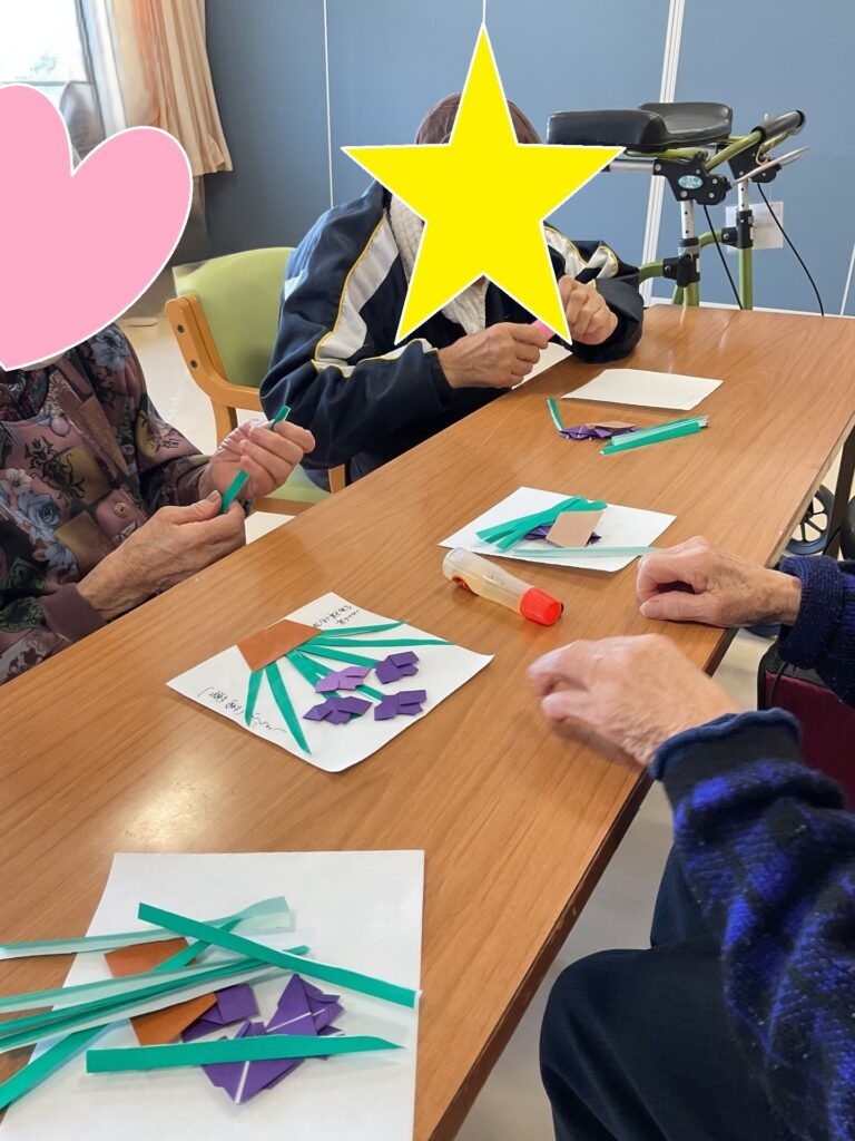 毎月恒例の折り紙教室が開催されました。3月の作品は「菖蒲の花」でした。
