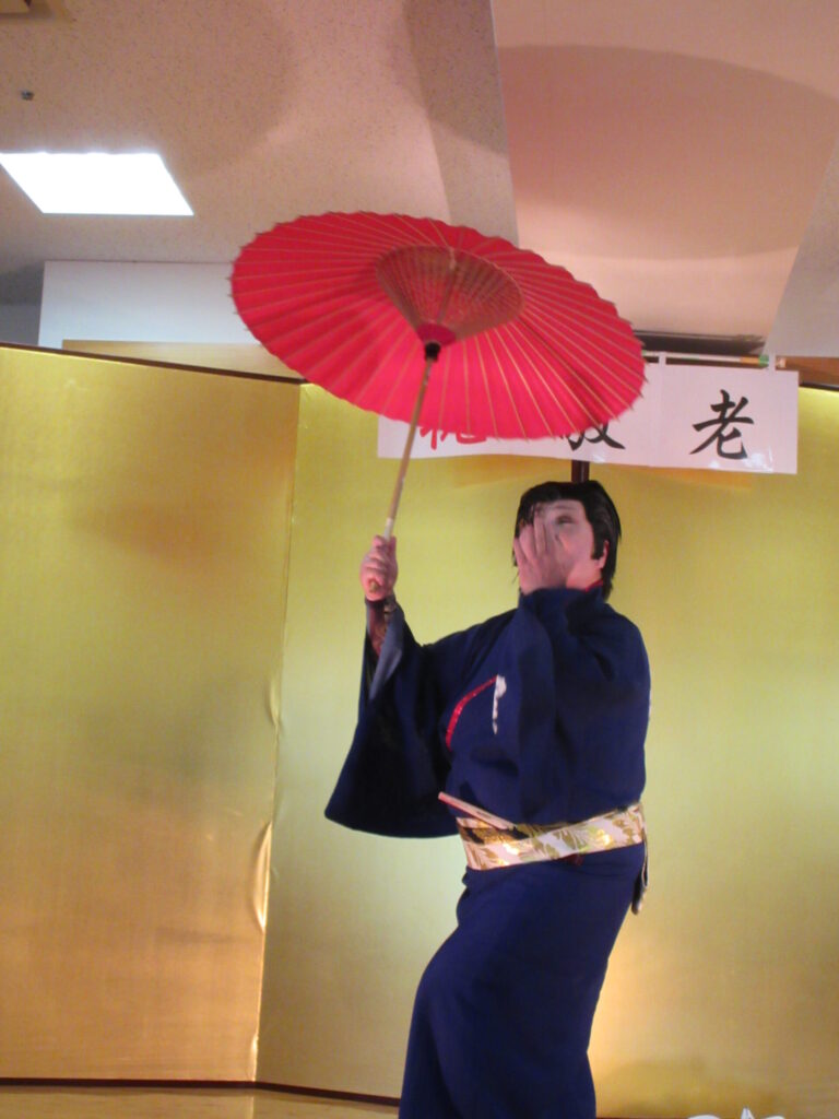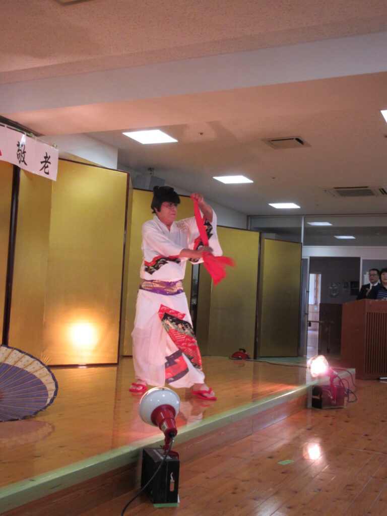 賀寿者のお祝いが済むと、入居者の皆様が楽しみにしていた『加賀見二郎 一座』の公演です。法人内のイベントに引っ張り凧の一座の皆さんですが、明生園の入居者様にもファンが多く、演者様の名前を呼んだり、大きな拍手でアピールされたりと大盛り上がりでした。笑いあり、大笑いあり、歓声ありのあっという間の公演時間でした。
