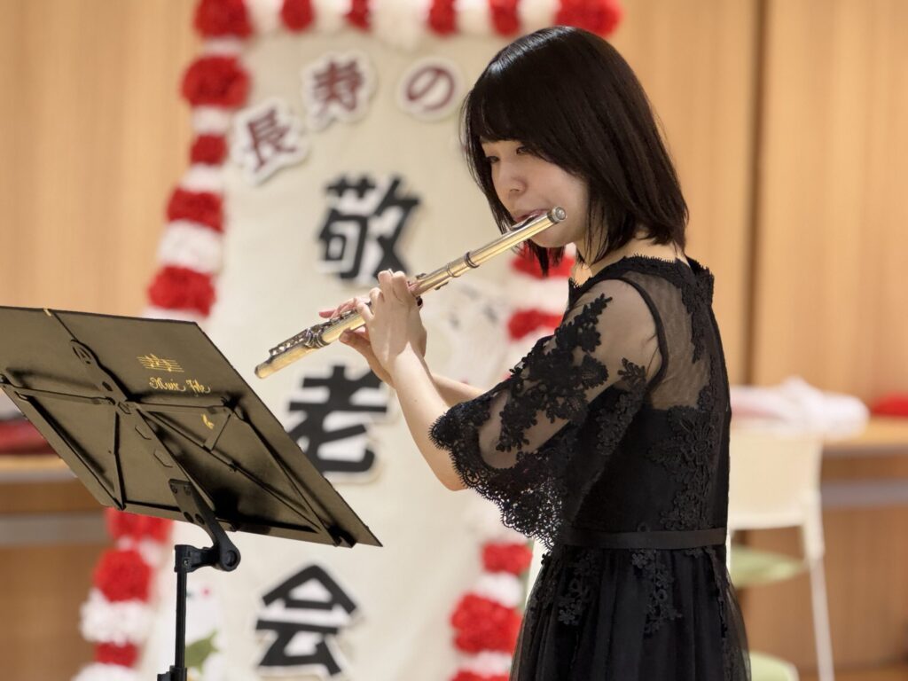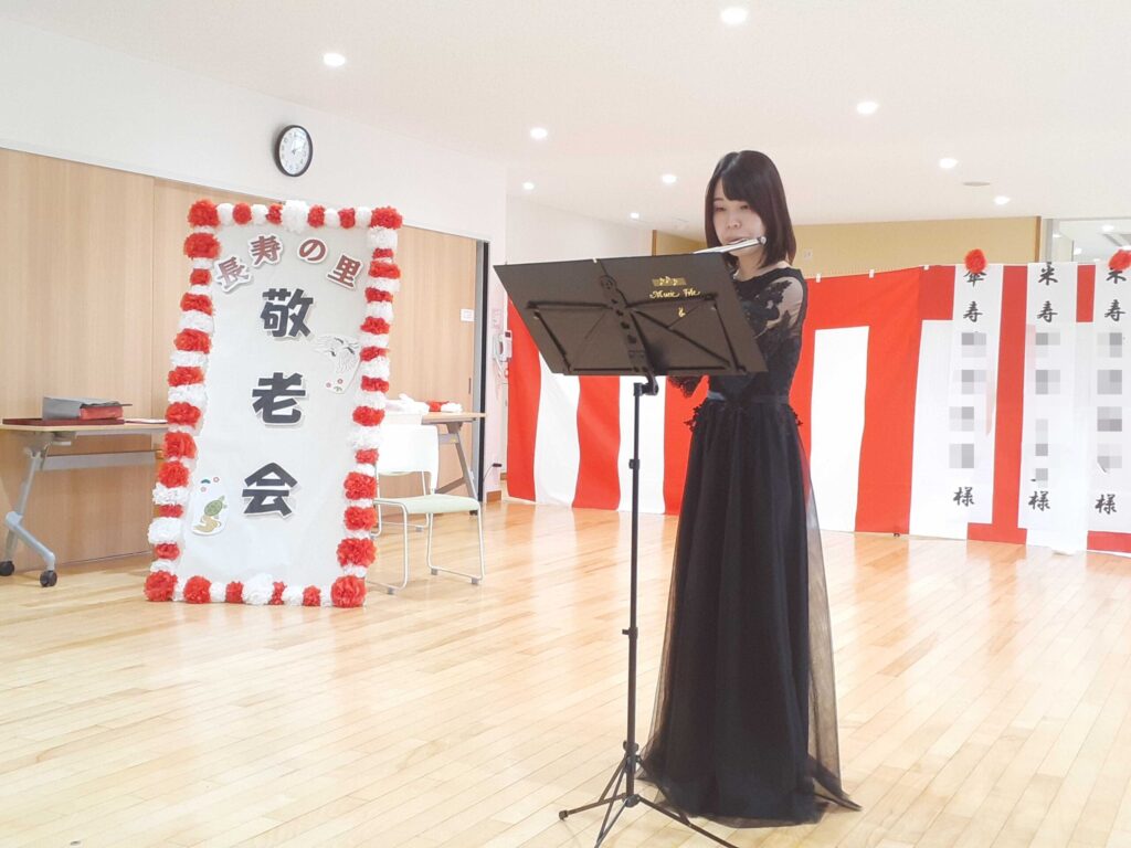 馴染みのある曲ばかりで、フルートの音色に合わせて歌っておられるご利用者様もおられ、演奏を楽しまれている姿を見る事ができ、私たち職員も嬉しく思いました。